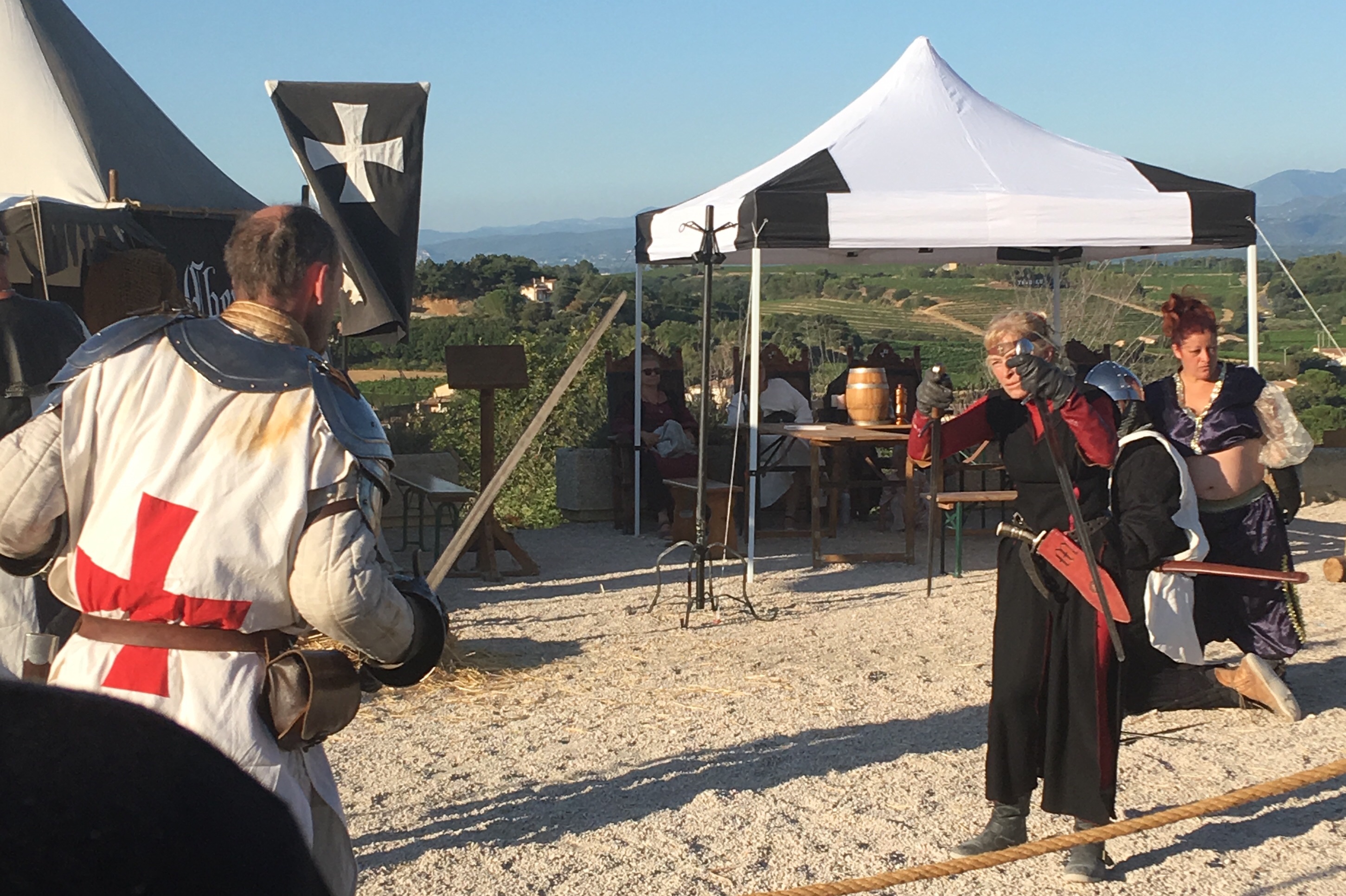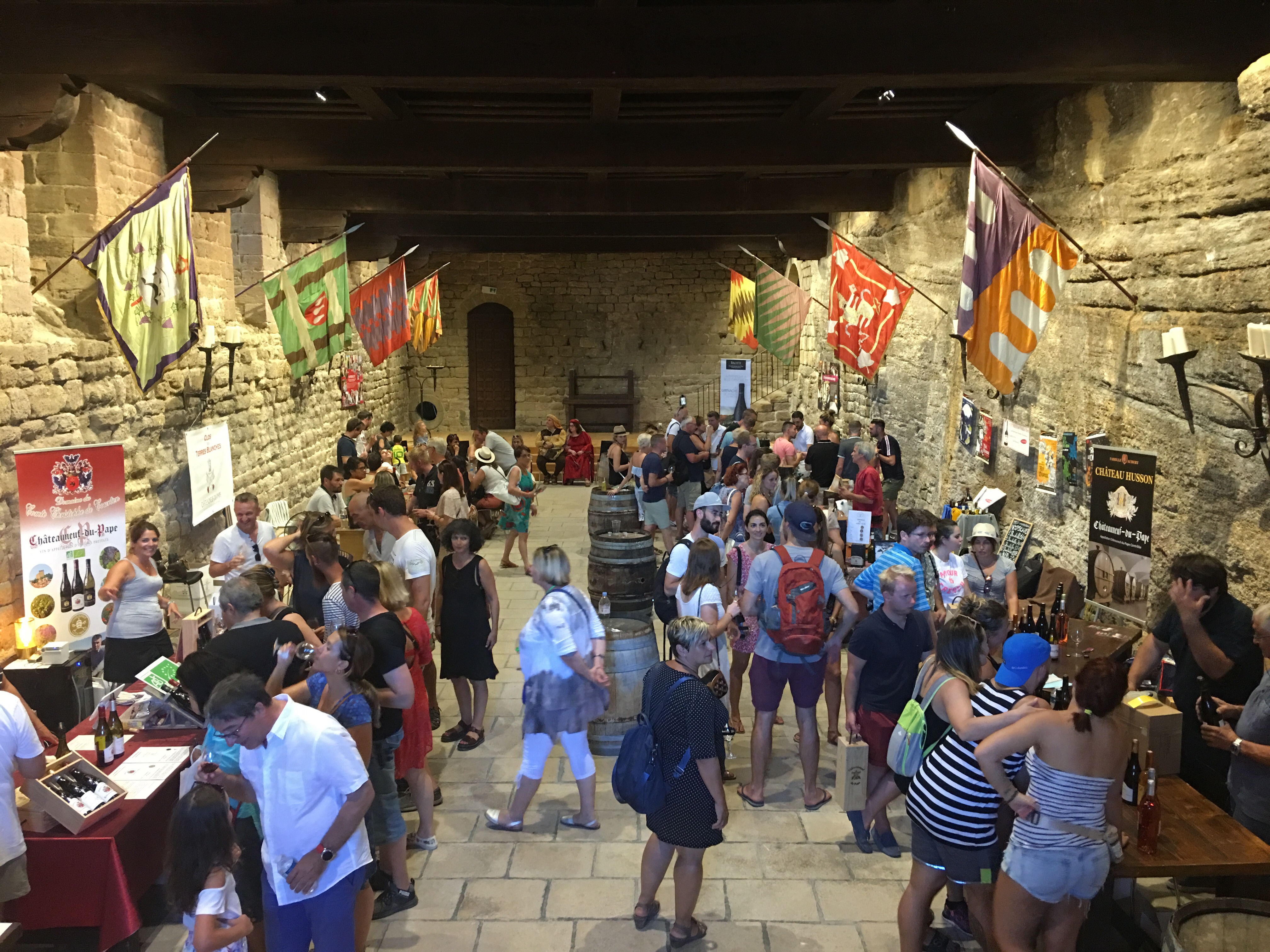 Chateaunuef-de-Pape is an interesting place and I would like to see it without the fete, but we managed to find some quieter spots and with fewer people. At the top of the main hill are the remains of a big chateau, a ‘stabilised ruin’, and a lots of tents with folk in older style dress, the set piece for the afternoon was the Crusades, and Saladin and local chieftains were part of the mix.