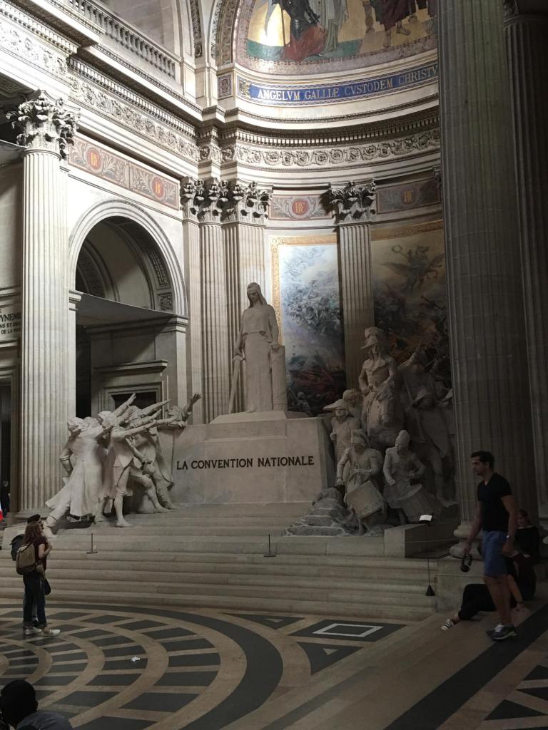 The Pantheon itself is a huge building, the repository of some notable Frenchmen (and a couple of women) mostly writers and philosophers. It was originally built as a church dedicated to Ste. Geneviève and to house the reliquary châsse containing her relics but, after many changes, now functions as a secular mausoleum. The walls are decorated with huge artworks, and several large statues and sculptures are at key places within the building. It is a key building within French history and yet I was not impressed with it, other than the sheer size.