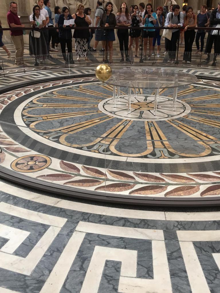 Foucalt’s pendulums, that is. You wait for one for ages and then along come two at once! Having seen the one in the Musée des arts et métiers earlier I was visiting the Pantheon the next day and the copy that Napoleon III ordered be constructed is hanging from the dome there. Much bigger than the original (as the dome is higher) the Pantheon version also has more interest, with a speaker explaining the purpose and operation of the installation to the audience. It is also protected by a railing and space …